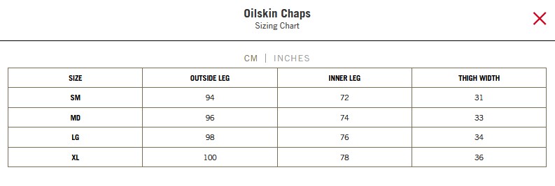 2097 Outback Oilskin Chaps, Sizes S to XL