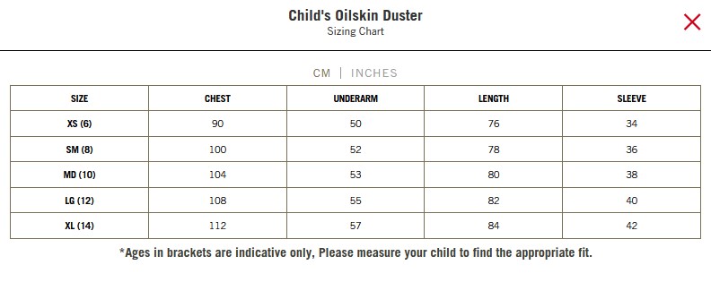 2602 Outback Oilskin Childrens Duster, Sizes XS to XL