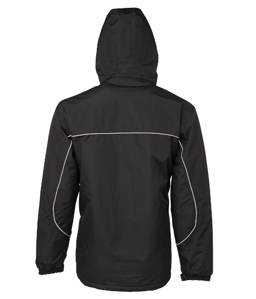 - Removable hood with neck protector, internal storage pouch and adjustable elastic hem with toggles
