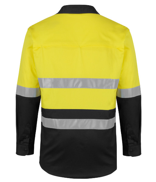 6DSWL JB’s Hi-Vis Day/Night Long Sleeve Stretch Work Shirt, Yellow/Black, Sizes 3XS to 5XL