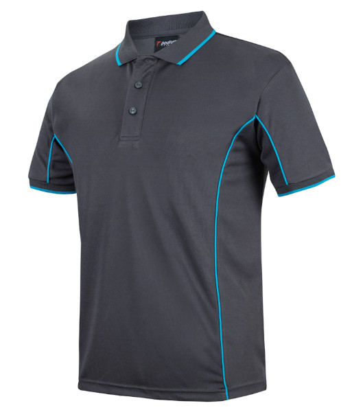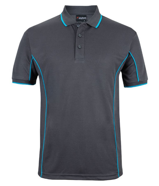 7PIP JB’s Podium Short Sleeve Piping Polo, Charcoal/Aqua, Sizes XS to 5XL
