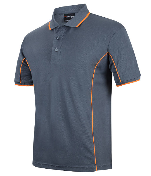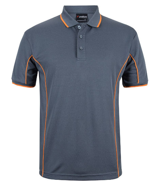 7PIP JB’s Podium Short Sleeve Piping Polo, Grey/Orange, Sizes 2XS to 5XL