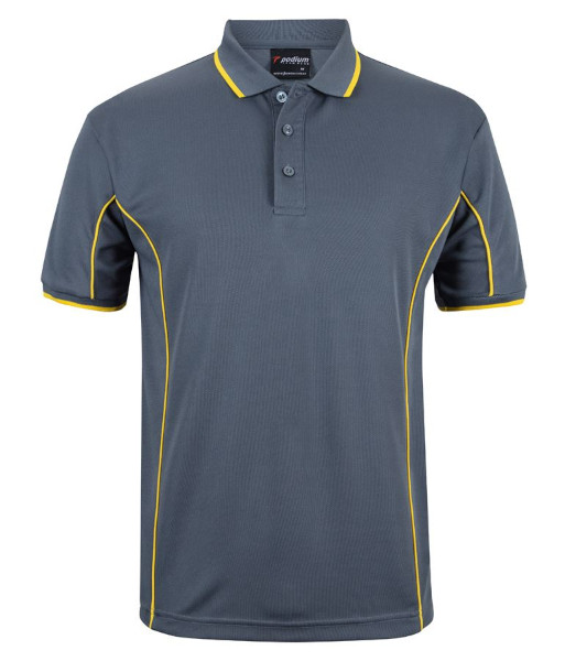 7PIP JB’s Podium Short Sleeve Piping Polo, Grey/Yellow, Sizes S to 5XL