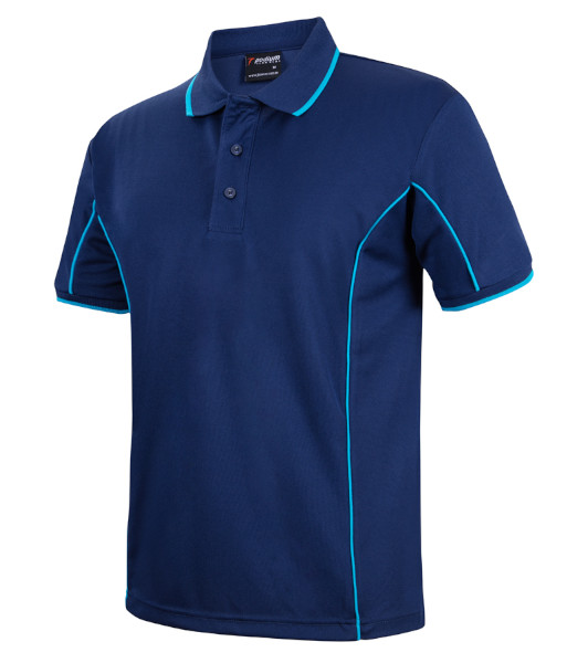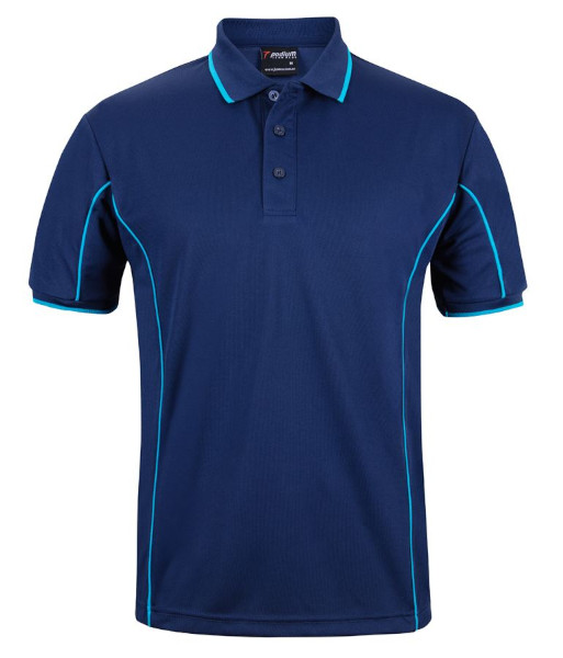 7PIP JB’s Podium Short Sleeve Piping Polo, Jnr Navy/Aqua, Sizes 2XS to 5XL
