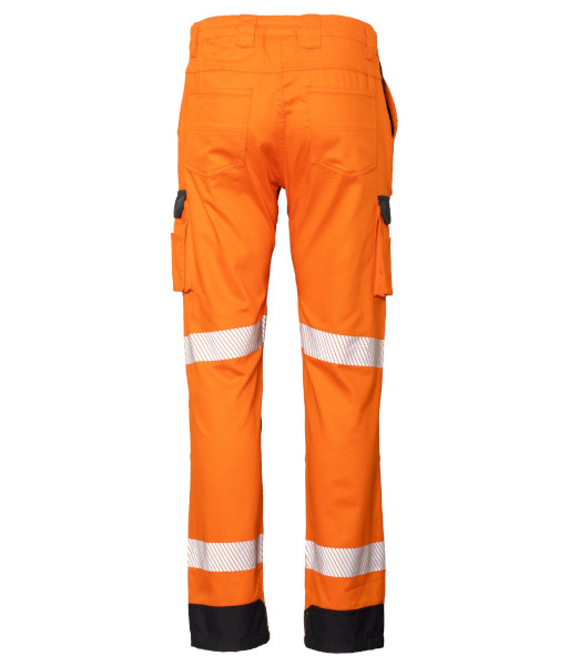 Orange/black trousers, durable 220gsm Ripstop cotton, with segmented reflective tape.