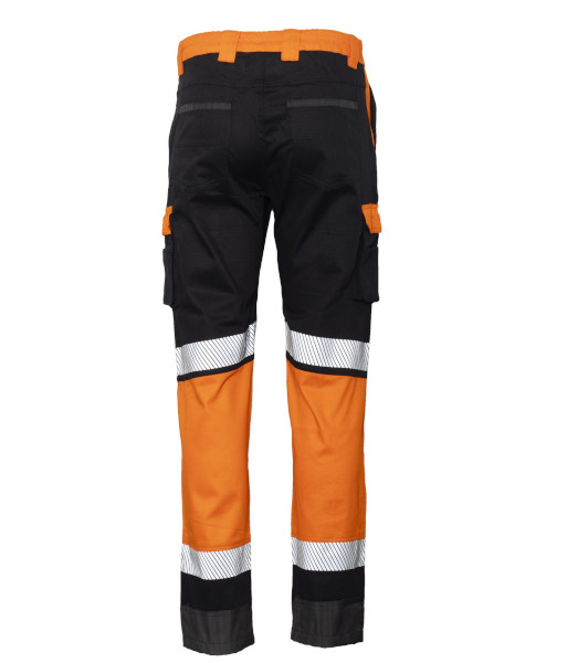 Black/orange trousers, durable 220gsm Ripstop cotton, with segmented reflective tape.