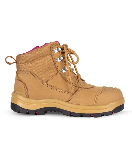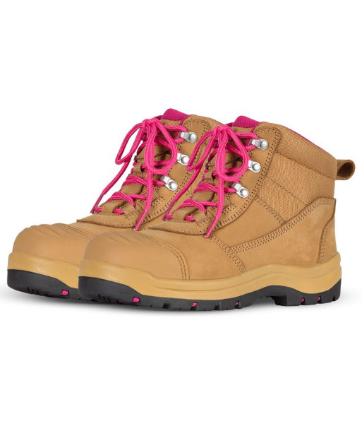9H9 JB’s Ladies Atrax Zip Safety Boot, Wheat/Pink, Sizes 5 to 12