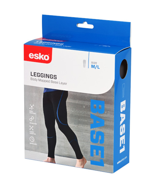 A4TLEG-BLKB Esko Base1 Body Mapped Base Layer Leggings, Black, Sizes M/L to 3XL/4XL
