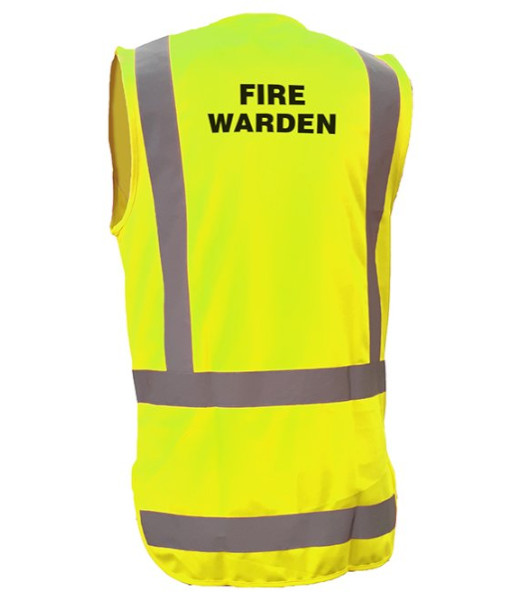 Hi-vis safety garment for Fire Warden, with phone pocket and ID, compliant.