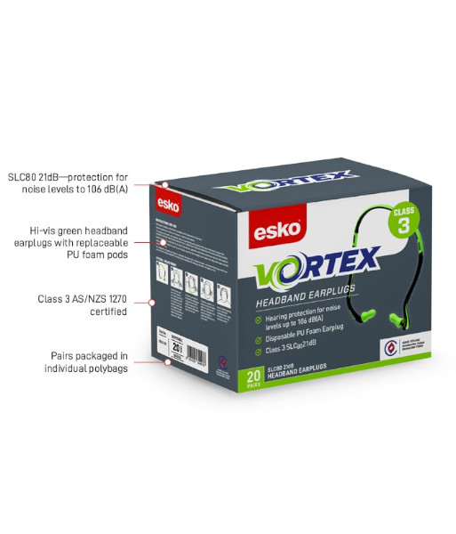 - Hi-vis green headband earplugs with replaceable PU foam pods