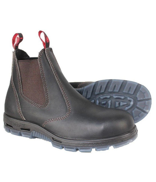 The classic Redback—unmatched comfort and durability, shock-absorbing technology, steel toe, premium full-grain leather. Claret/rich brown colour.