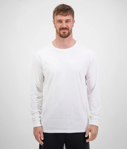 Same solid fit, a bit more sleeve. The Basis Long Sleeve Tee is laidback comfort meets clean, classic design. Made with breathable 185gsm cotton and finished with ribbed cuffs and a set-in sleeve, it’s a staple that works with anything. Easy to style, easy to rely on. Your new cool-weather essential.