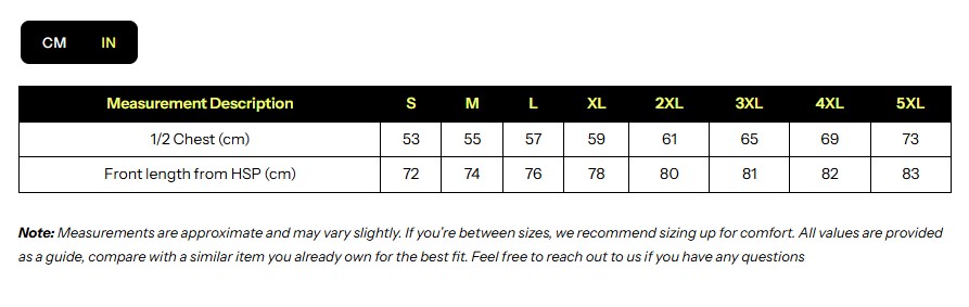 - S, M, L, XL, 2XL, 3XL, 4XL, 5XL