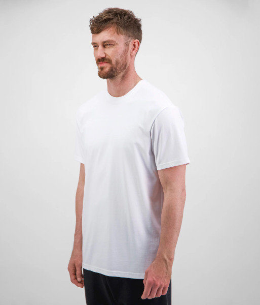 The Everyday Short Sleeve Tee is a step up in weight. Made from heavier 225gsm combed cotton – it’s thicker, softer, structured without being stiff, comfortable without being basic. Designed with a relaxed cut that works tucked, untucked, or layered. It’s easy to wear and even easier to re-wear.