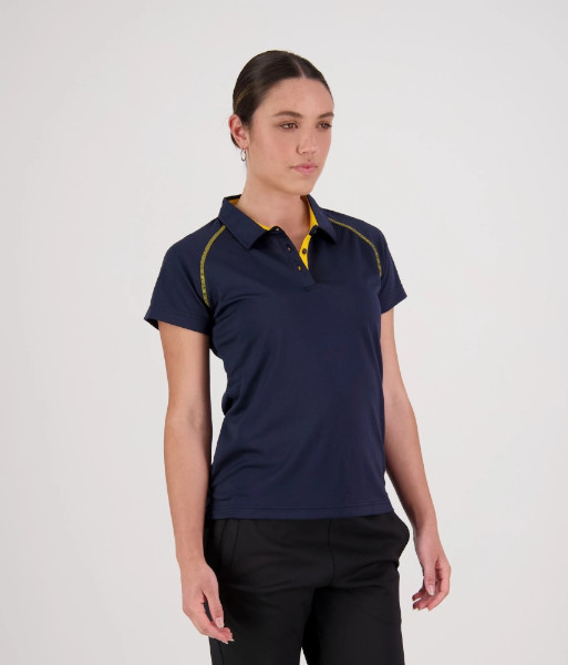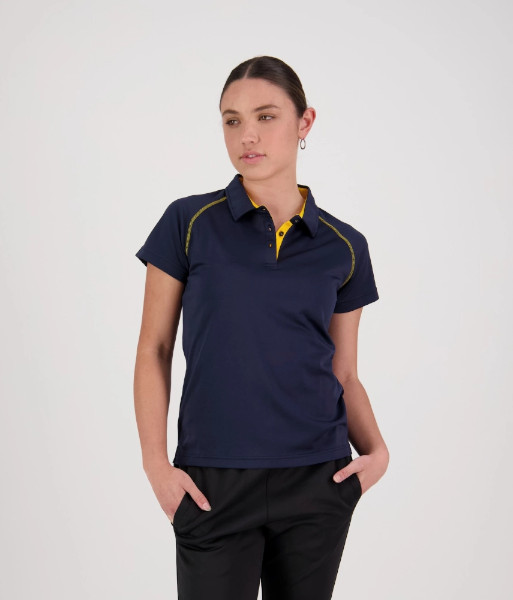 XTW Cloke Womens Short Sleeve XT Performance Polo, Navy/Gold, Sizes 8 to 22