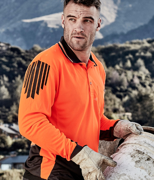 ZH310 Syzmik Mens Hi Vis Day Only Long Sleeve Flux Polo, Orange/Charcoal, Sizes 2XS to 7XL