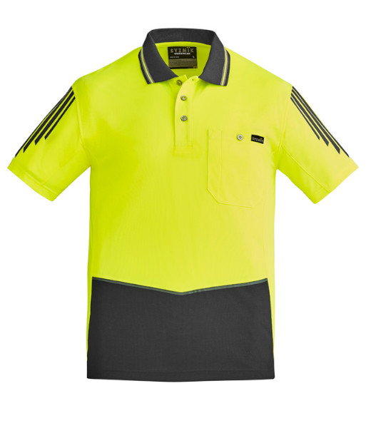 ZH315 Syzmik Mens Hi Vis Day Only Short Sleeve Flux Polo, Yellow/Charcoal, Sizes 2XS to 7XL