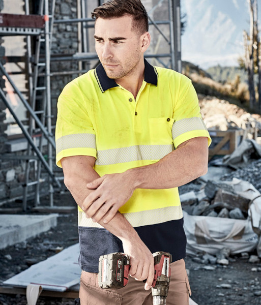 ZH535 Syzmik Unisex Hi Vis Day/Night Short Sleeve Segmented Tape Polo, Yellow/Navy, Sizes 2XS to 7XL