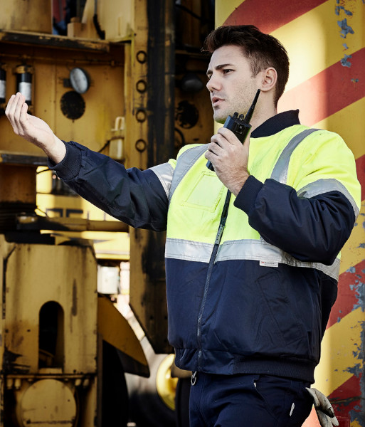 ZJ351 Syzmik Mens Hi Vis Day/Night Quilted Flying Jacket, Yellow/Navy, Sizes 2XS to 7XL