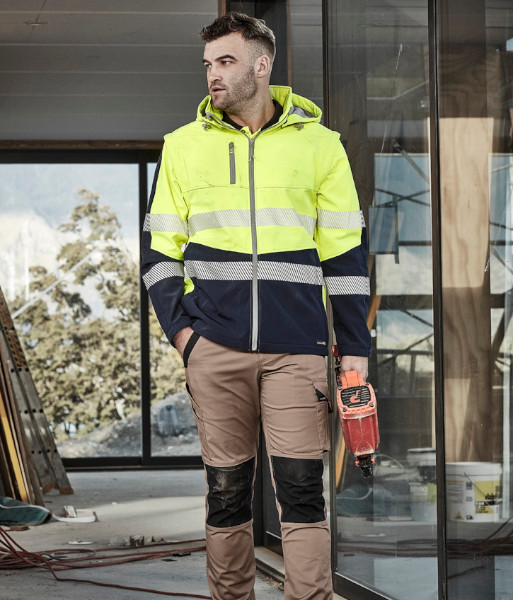 ZJ453 Syzmik Unisex Hi Vis Day/Night Streetworx 2 in 1 Stretch Softshell Jacket, Yellow/Navy, Sizes 2XS to 7XL