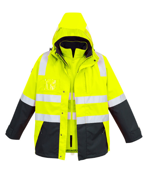 ZJ532 Syzmik Mens Hi Vis Day/Night 4 in 1 Waterproof Jacket, Yellow/Navy, Sizes 2XS to 7XL