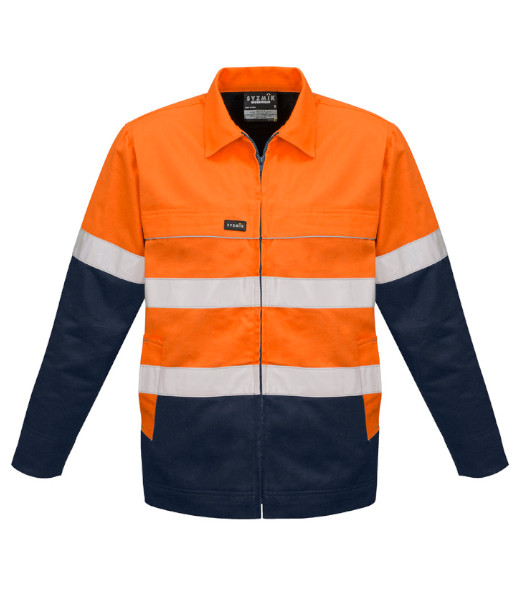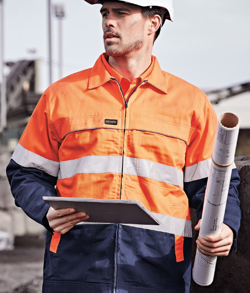ZJ590 Syzmik Mens Hi Vis Day/Night Cotton Drill Jacket, Orange/Navy, Sizes 2XS to 7XL