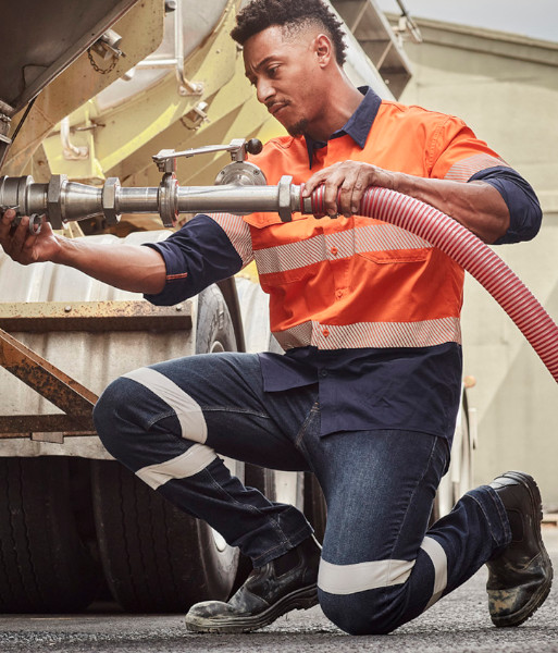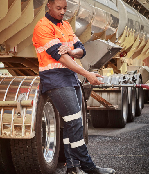 ZP907 Syzmik Mens Bio Motion Taped Stretch Jean, Denim, Sizes 72 to 132