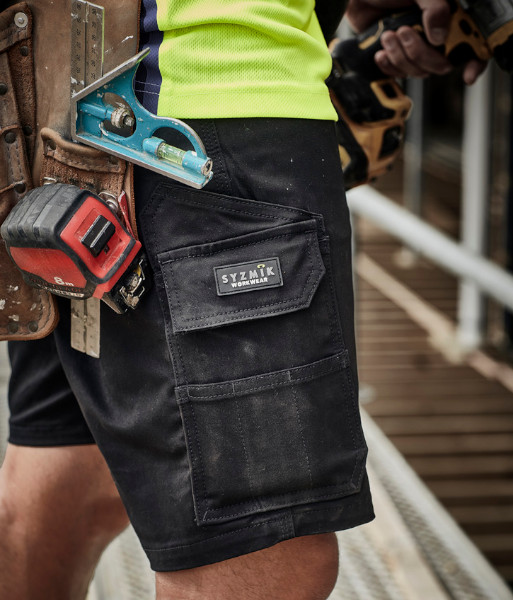 ZS235 Syzmik Mens Essential Cooling Stretch Cargo Short, Black, Sizes 72 to 132