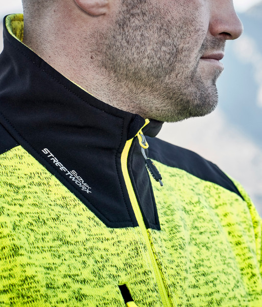 - Main: 100% Knitted Polyester, 340 GSM; Contrast: 100% Polyester Softshell, 300 GSM