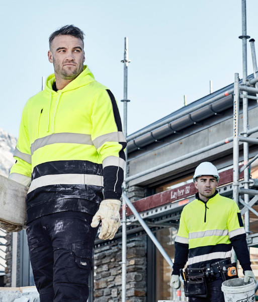 ZT483 Syzmik Unisex Hi Vis Day/Night Stretch Taped Hoodie, Yellow/Navy, Sizes 2XS to 7XL
