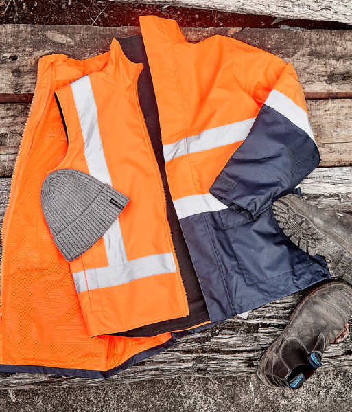 - Vest can zip into ZJ220 Mens Hi Vis Basic 4 in 1 Waterproof Jacket