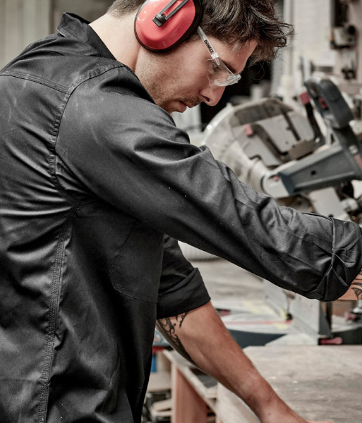 ZW121 Syzmik Mens Lightweight Tradie Long Sleeve Shirt, Black, Sizes S to 7XL