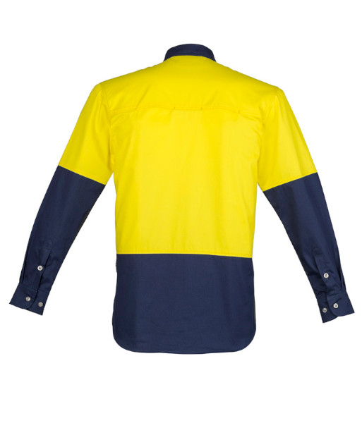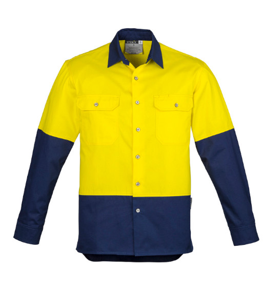ZW122 Syzmik Mens Hi Vis Day Only Industrial Long Sleeve Shirt, Yellow/Navy, Sizes S to 7XL