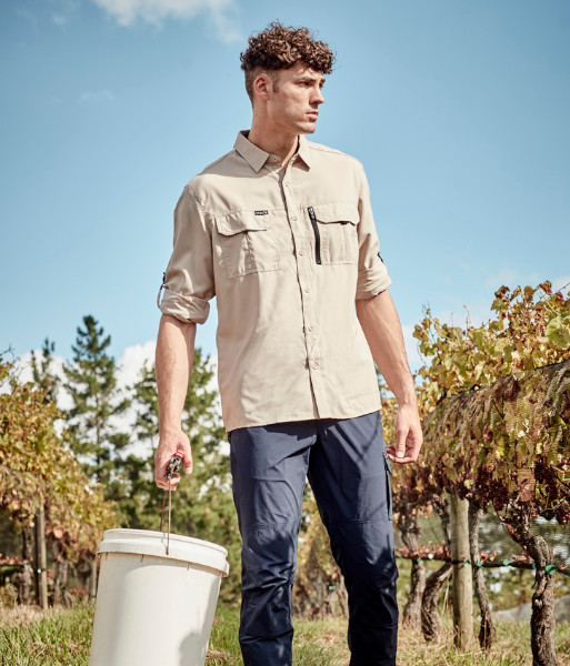ZW460 Syzmik Mens Outdoor Long Sleeve Shirt, Sand, Sizes 2XS to 7XL