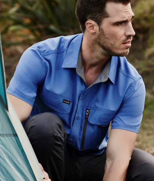 ZW465 Syzmik Mens Outdoor Short Sleeve Shirt, Blue, Sizes 2XS to 7XL