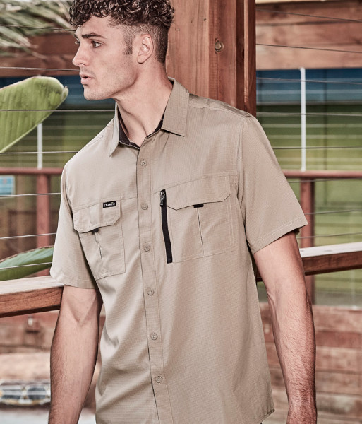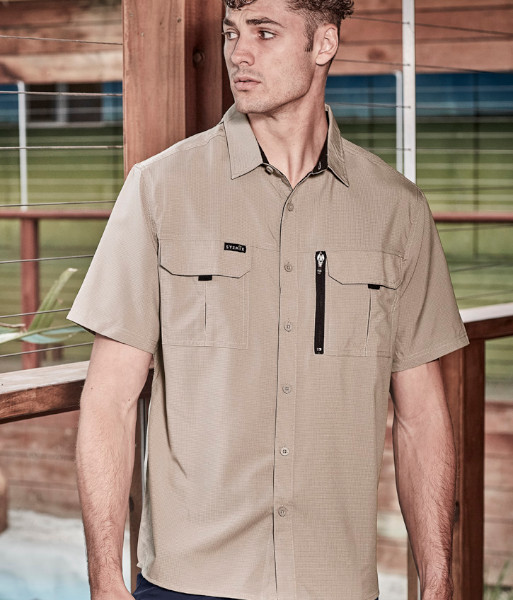 ZW465 Syzmik Mens Outdoor Short Sleeve Shirt, Sand, Sizes 2XS to 7XL