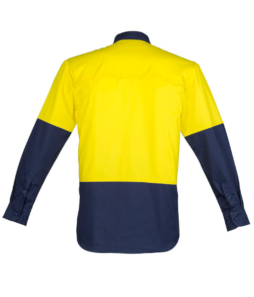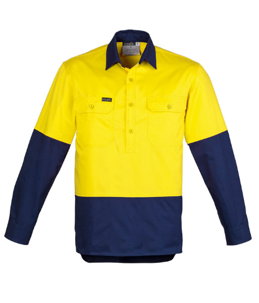 ZW560 Syzmik Mens Hi Vis Day Only Closed Front Long Sleeve Shirt, Yellow/Navy, Sizes 2XS to 7XL